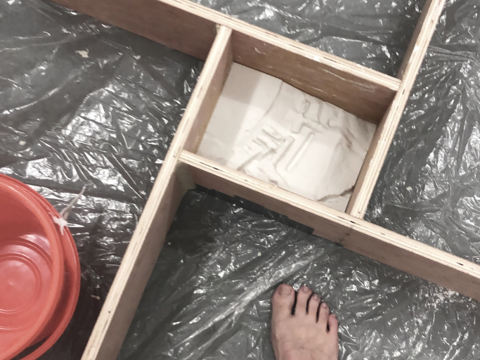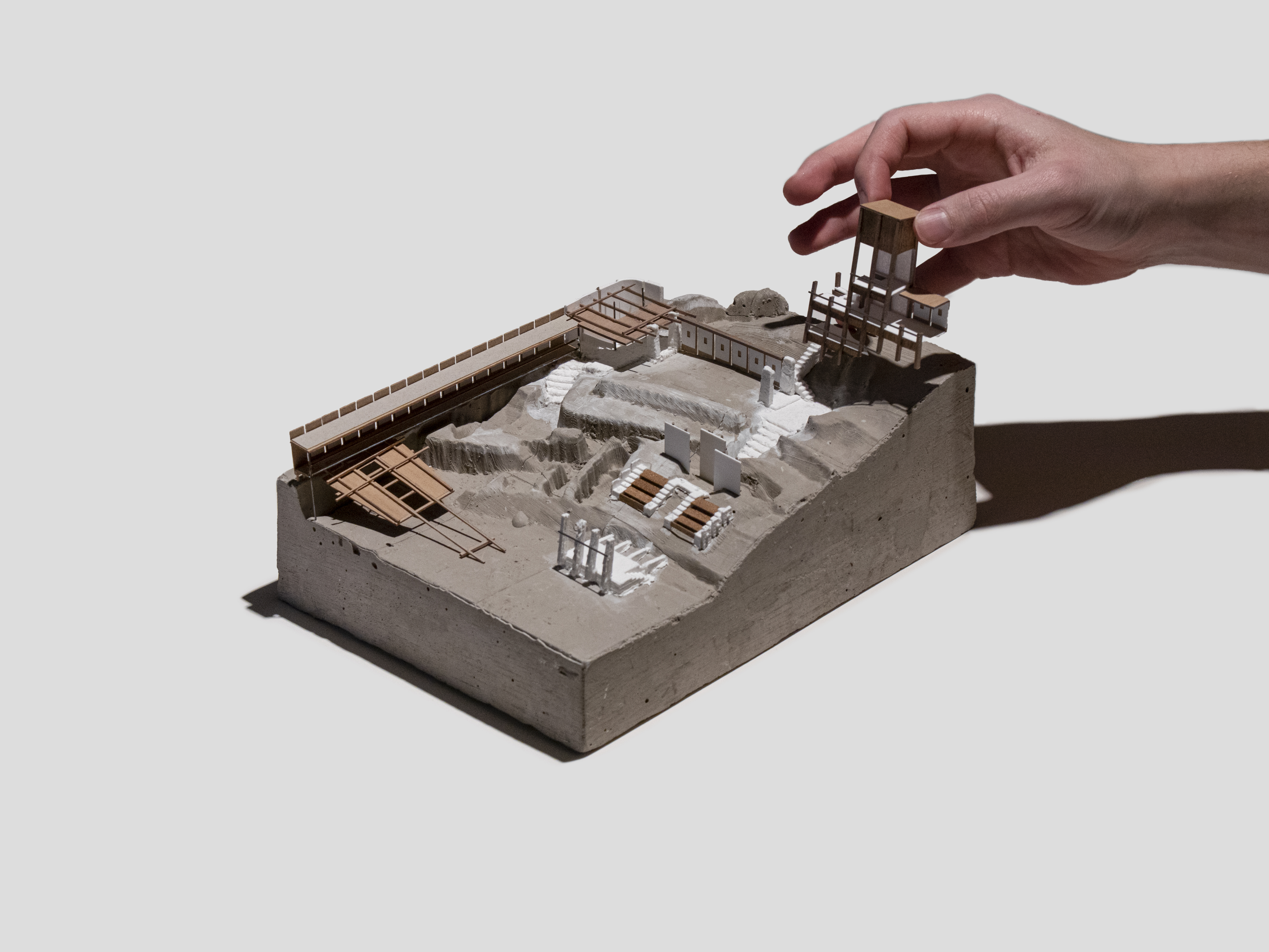 A continued exploration of the conditions of my third year site ‘Amphithéâtre des Trois Gaules’. Using the advancement of techniques in paper casting as a means to reapproach the site afresh, this 1:150 scale model was commenced as a test bed to develop aspects of my project into a more mature proposal established around enhancing the city of Lyon’s communal pride in the ruin and weighing its impact on the historic landscape.
